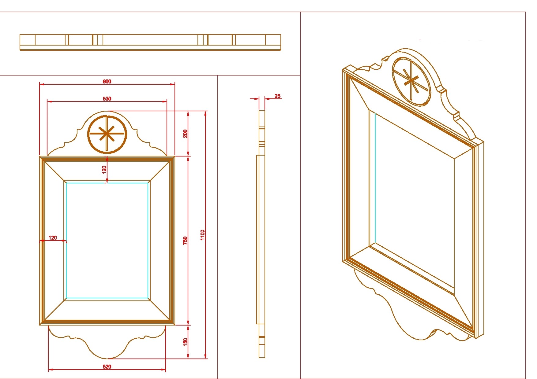 Dimensions (Overall):   1100 mm(H) x  600 mm(W) x 25 mm(D)