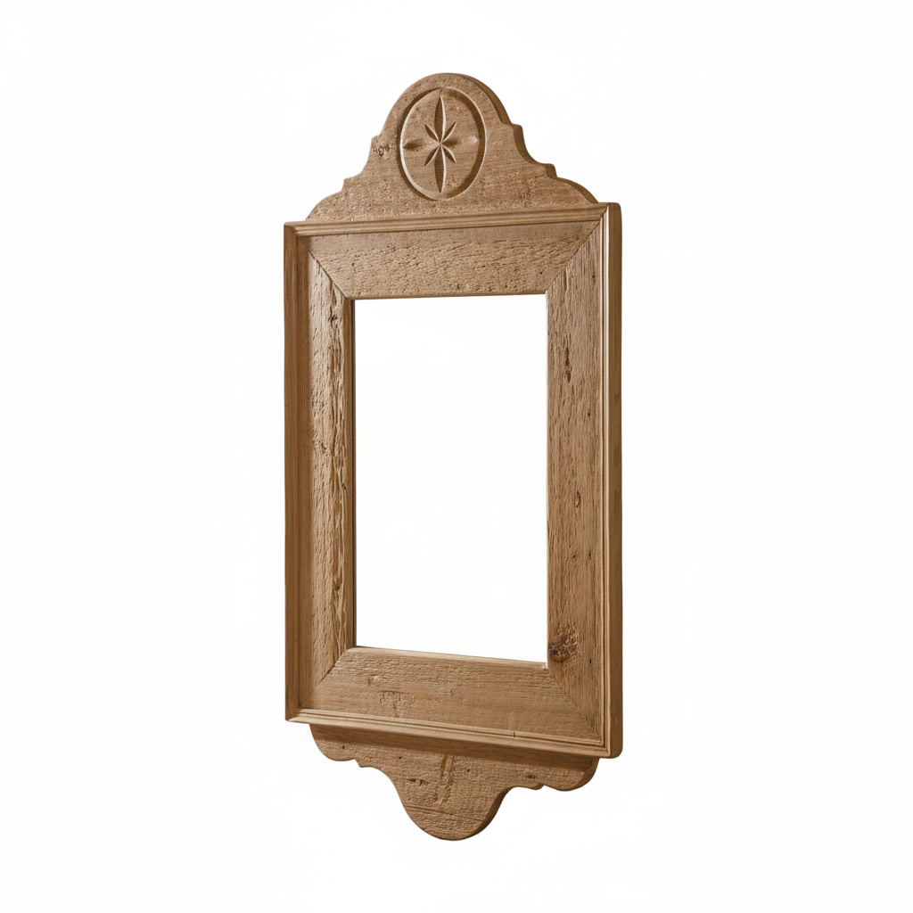 This decorative solid pine mirror is a refined expression of traditional Alpine craftsmanship, combining simplicity with distinctive ornamental detail. Crafted from 100% solid pinewood and finished with a distinctive aged surface treatment, it enhances the natural grain and texture of the wood.