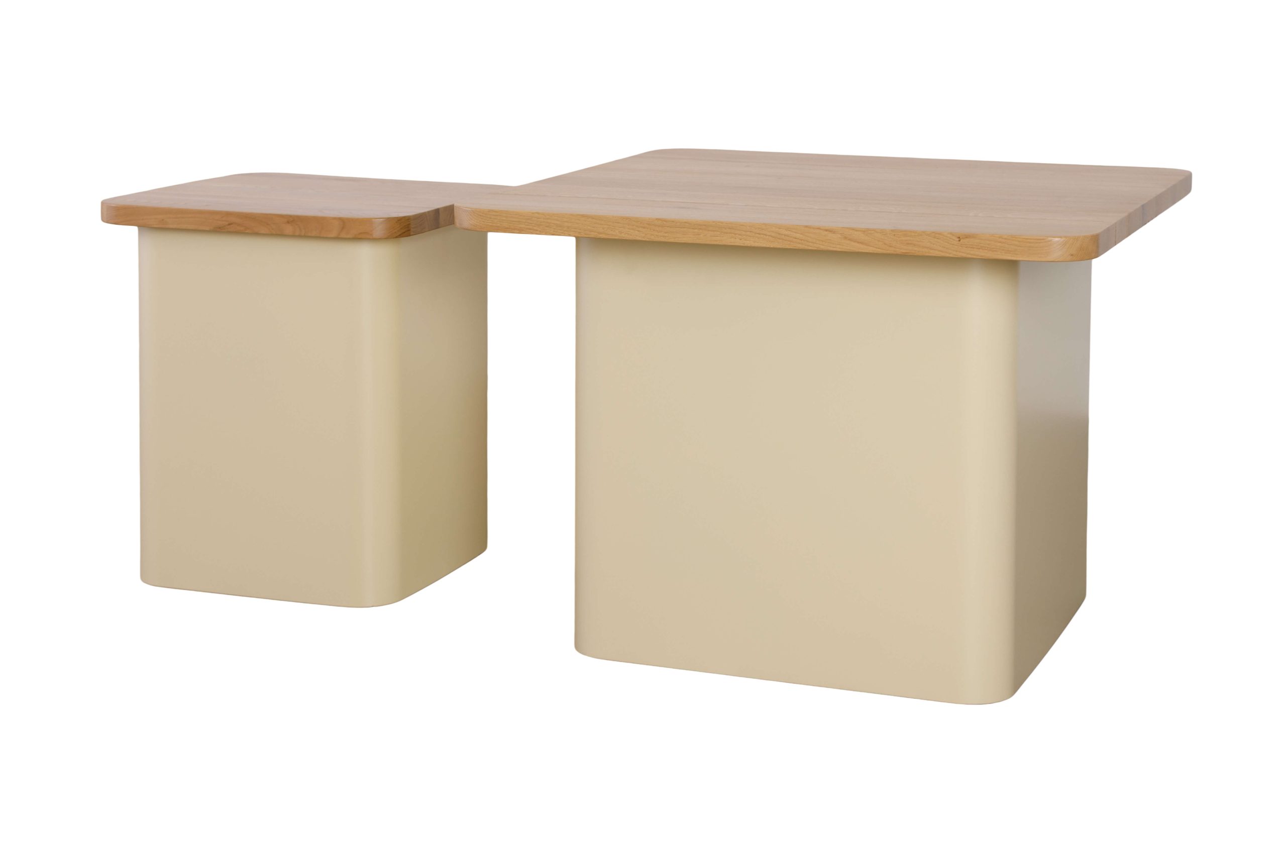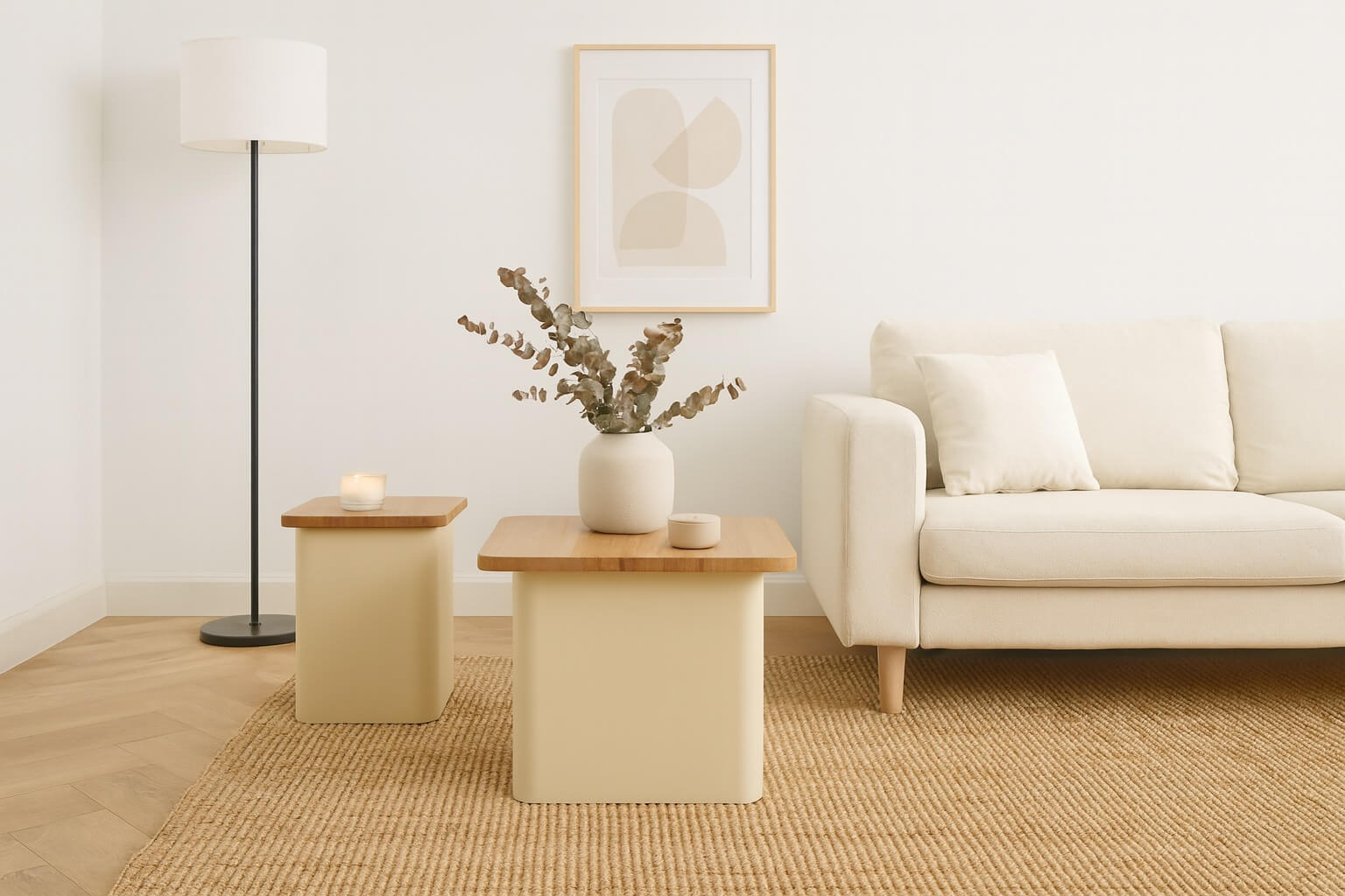 These elegant side tables blend minimalist design with natural warmth. Featuring solid oak tops and full metal bases in a soft beige tone, they bring calm sophistication to any living space. The clean lines and smooth surfaces make them ideal for modern and Scandinavian interiors. Perfect as coffee tables or bedside pieces, they offer both style and functionality. Display them together as a set or individually to create a harmonious, balanced look.