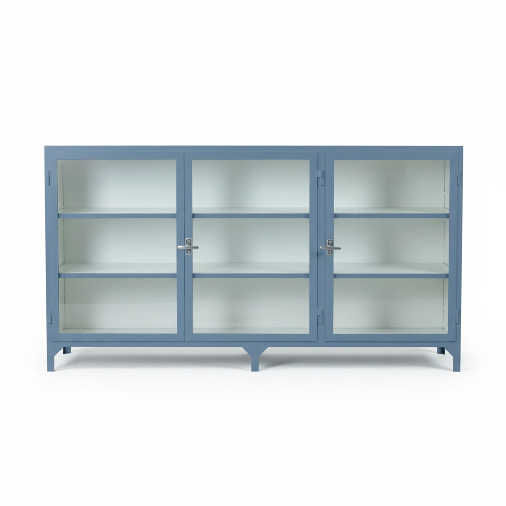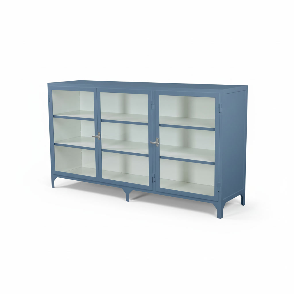 Step into the captivating upper realm of the Alluring Iron Cabinet, where three shelves reside behind two glass doors, providing a captivating display platform for your cherished collectibles. The tempered glass, a testament to the cabinet’s durability, allows you to admire your treasures while safeguarding them from dust and harm.