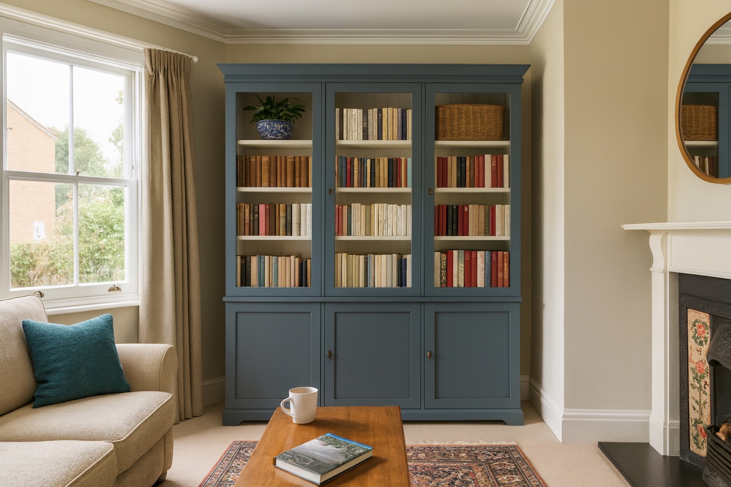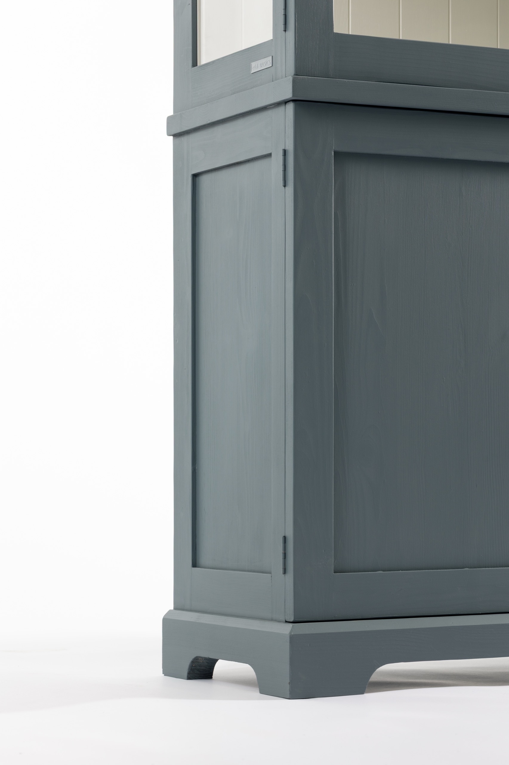 This elegant bookcase brings timeless charm and sophistication to any living space. Finished in a muted blue tone, it features glass-fronted doors that beautifully frame your book collection while keeping it dust-free. The lower cupboards offer discreet storage for additional items, maintaining a clean and organized look. Subtle detailing and classic lines make it a versatile piece that complements both traditional and modern interiors. Perfect for a reading nook, study, or sitting room, this bookcase blends practicality with refined craftsmanship.