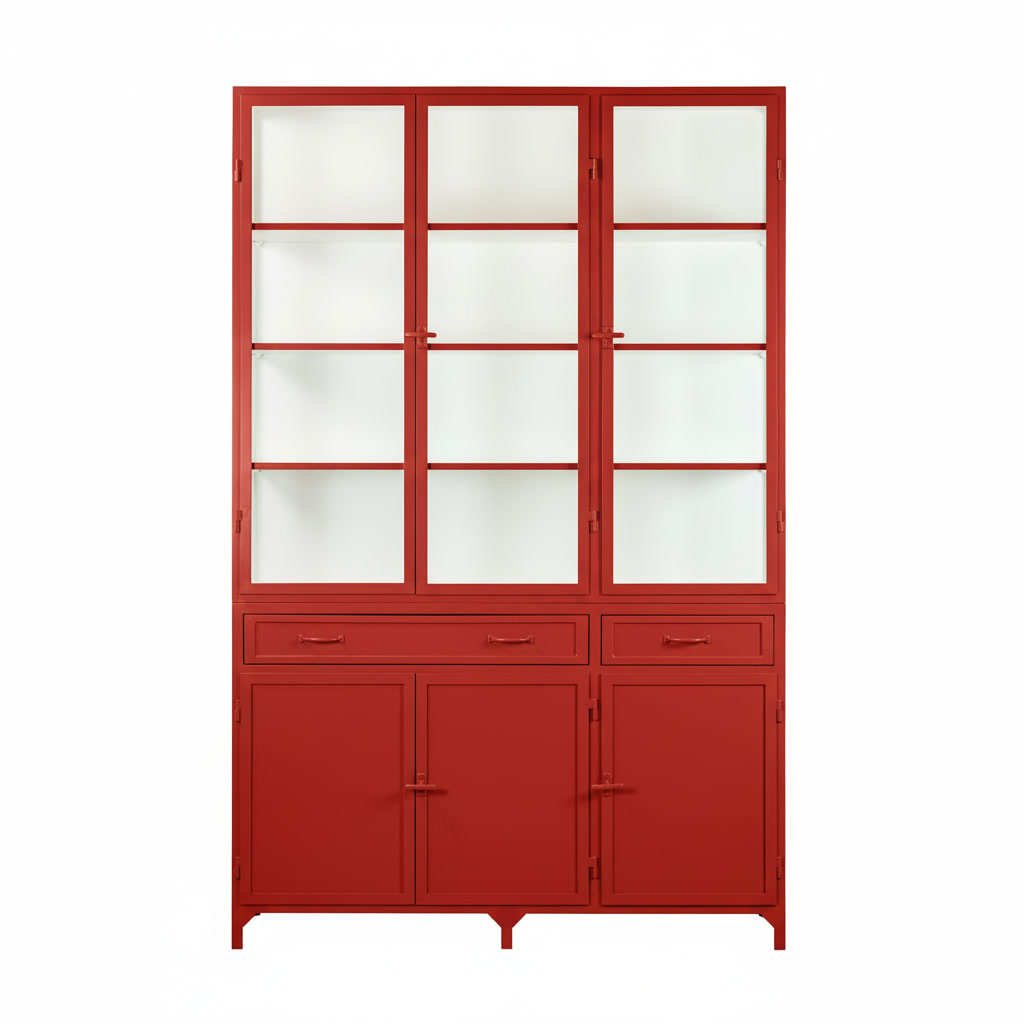 Step into the captivating upper realm of the Alluring Iron Cabinet, where three shelves reside behind two glass doors, providing a captivating display platform for your cherished collectibles. The tempered glass, a testament to the cabinet’s durability, allows you to admire your treasures while safeguarding them from dust and harm.